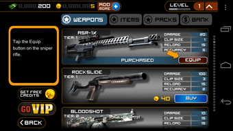 Frontline Commando comprend une boutique virtuelle dans laquelle il est possible d'acheter de nouvelles armes et de nouveaux équipements pour devenir plus puissants ou plus résistants. Ces items peuvent être achetés grâce à l'argent virtuel que vous gagnez dans les missions du jeu. Si vous n'en avez pas assez, vous pouvez aller plus vite en payant avec du vrai argent.